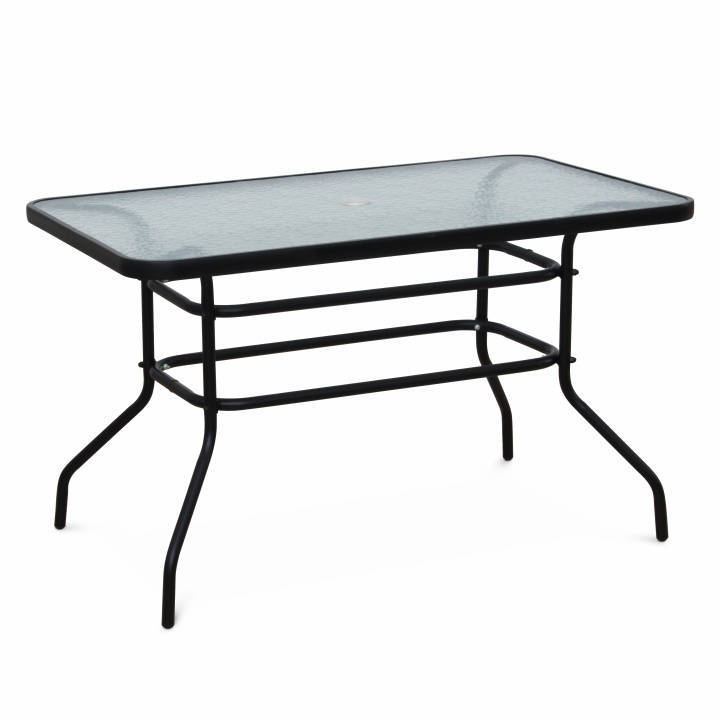 A Étkezőasztal, fekete acél/edzett üveg, DEMAT egy modern, funkcionális asztal, amely stílusos megjelenésével és praktikus kialakításával tökéletes kiegészítője az otthonnak. Kiváló minőségű anyagokból készült, amelyek garantálják a hosszú élettartamot és az esztétikus megjelenést.