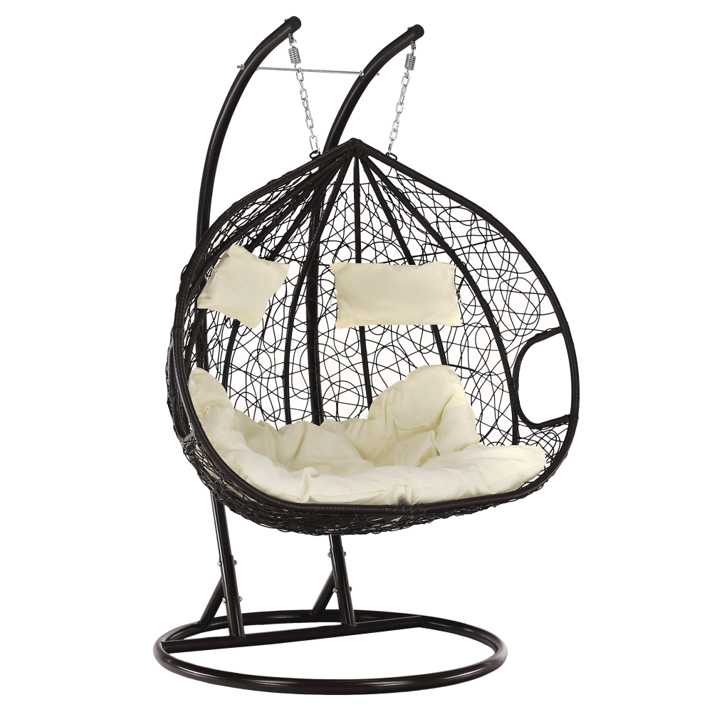 Anyag: fém/műrattan/szövet Színe: barna/bézs Fotel mérete (SzéxMéxMa): 133x117x195 cm Ülőrész magassága: 52 cm Ülőrész mélysége: 70 cm Maximális terhelhetőség: 200 kg Javasoljuk, hogy a szabadban a fotelt védőhuzattal vagy ponyvával védjeAlkalmas kültérre és beltérbe egyaránt párnával Mosás előtt el kell távolítani a töltetet, és csak a huzatot szabad kimosniA huzat cipzárosLevehető huzatMosható 40 °C-onNe fehérítseNe szárítsa szárítóbanNe vasaljaNe tisztítsa vegyilegdupla fotel A csomagolás tartalmazza az állványtA függőszék rögzítőelemei közvetlenül a kör alakú keretben találhatókSzállítás szétszerelve