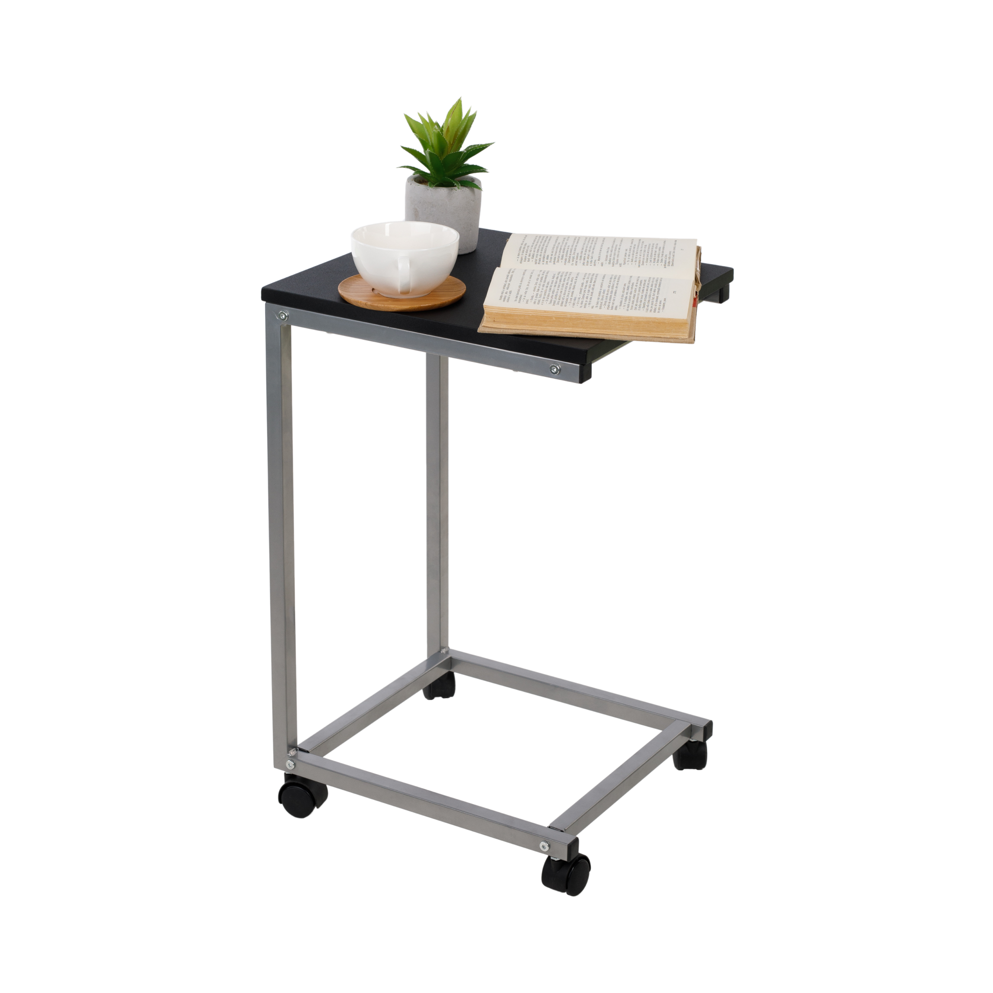 Kisasztal, fekete/fém ezüst, MANNY – dohányzóasztal letisztult dizájnnal
