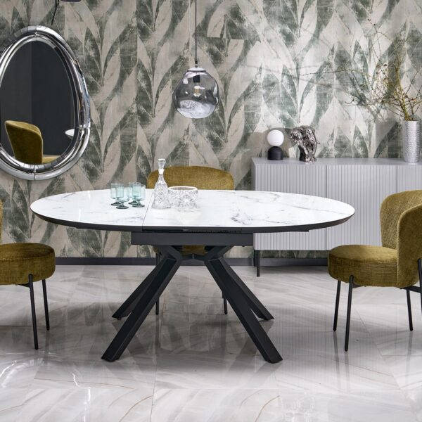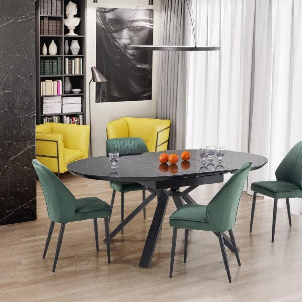 VERTIGO bővíthető étkezőasztal, kerek, szín: fekete márvány/fekete