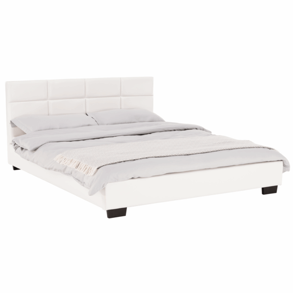 Franciaágy, fehér színben, textilbőr kárpitozás. Stabil ágykeret, elegáns fejvég – kényelmes álmok alapja minden éjjel | Méret: 160x200 cm.