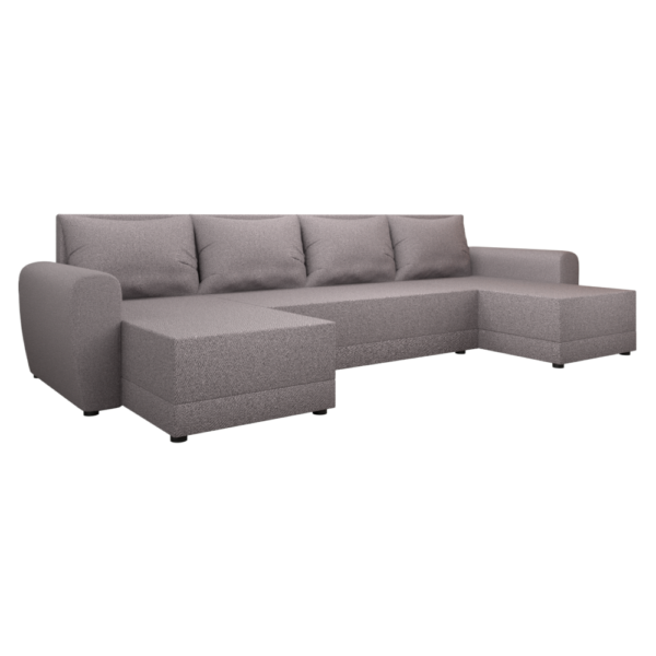 Modernkanapé, szürke színben, szövet kárpitozás. Vastagon párnázott, kényelmes ülőfelület – a nappali elegáns centerdarabja.