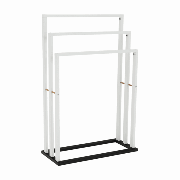 Törülközőtartó, bambusz/fehér, KOMO NEW, fehér színben. Prémium minőségű fürdőszoba kiegészítők – tartós anyagokból, modern dizájnnal.